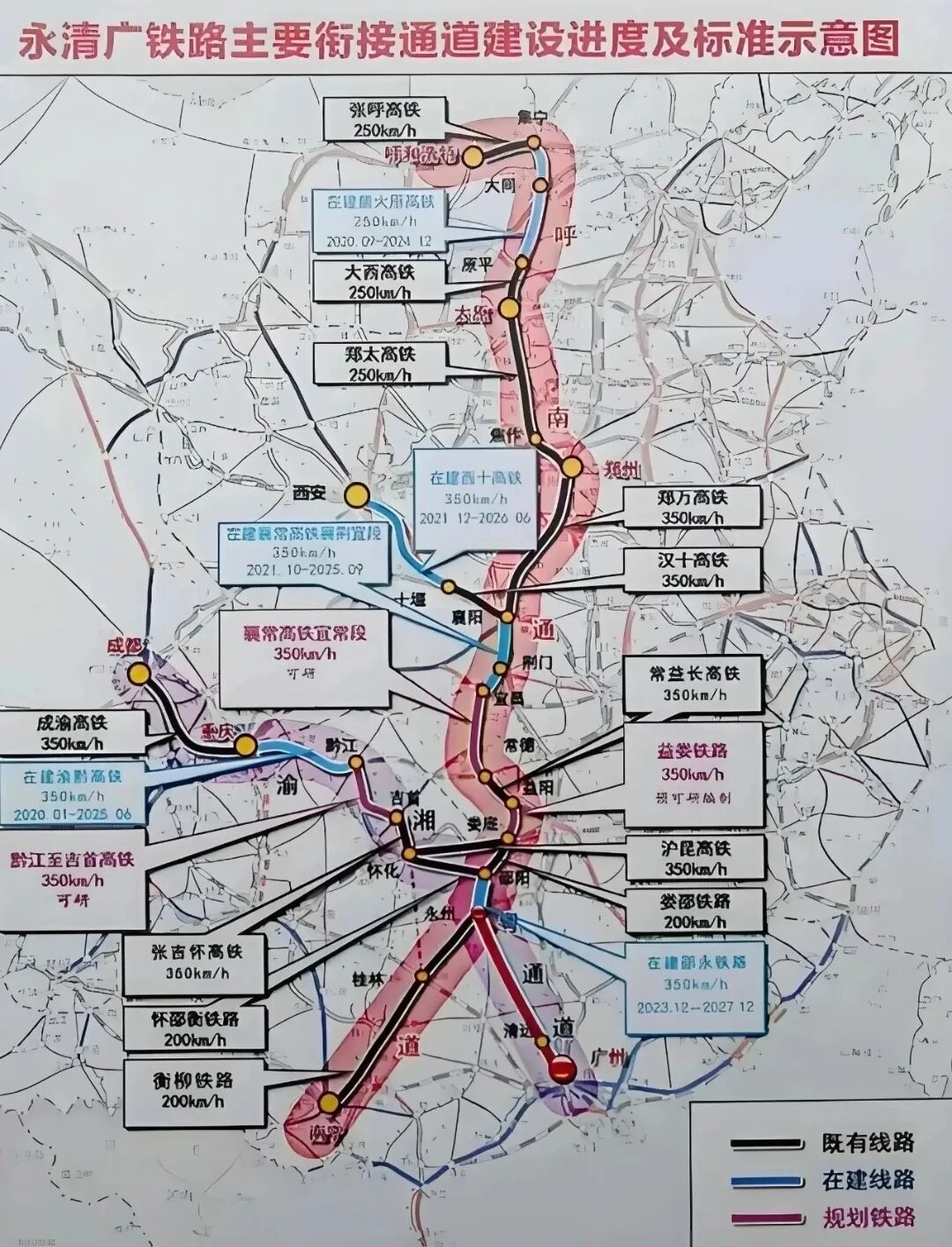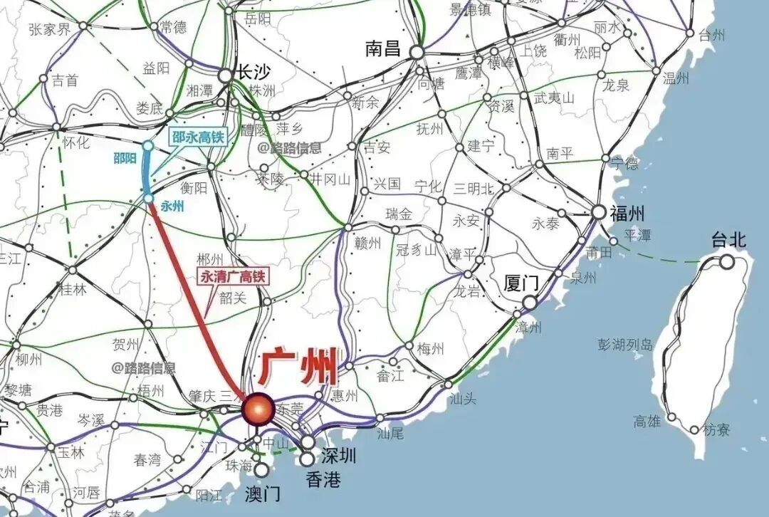 项目北端衔接的邵永高铁已开工,并预留本线接轨条件;南端广州枢纽具备本线引入与广州至珠海(澳门)、广州至深圳高铁新通道等线路互联互通条件。