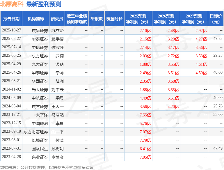 最新盈利预测明细如下: